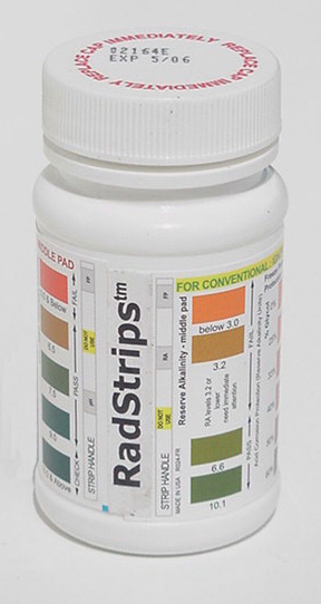 Newly improved GWR "RadStrips" now test Dexcool along with all original glycol types. In 30 seconds know pH, Corrosion Level, Freeze Point, % of Glycol and the all important Reserve Alkalinity. These are the ones, plus we have Diesel Truck test strips too!